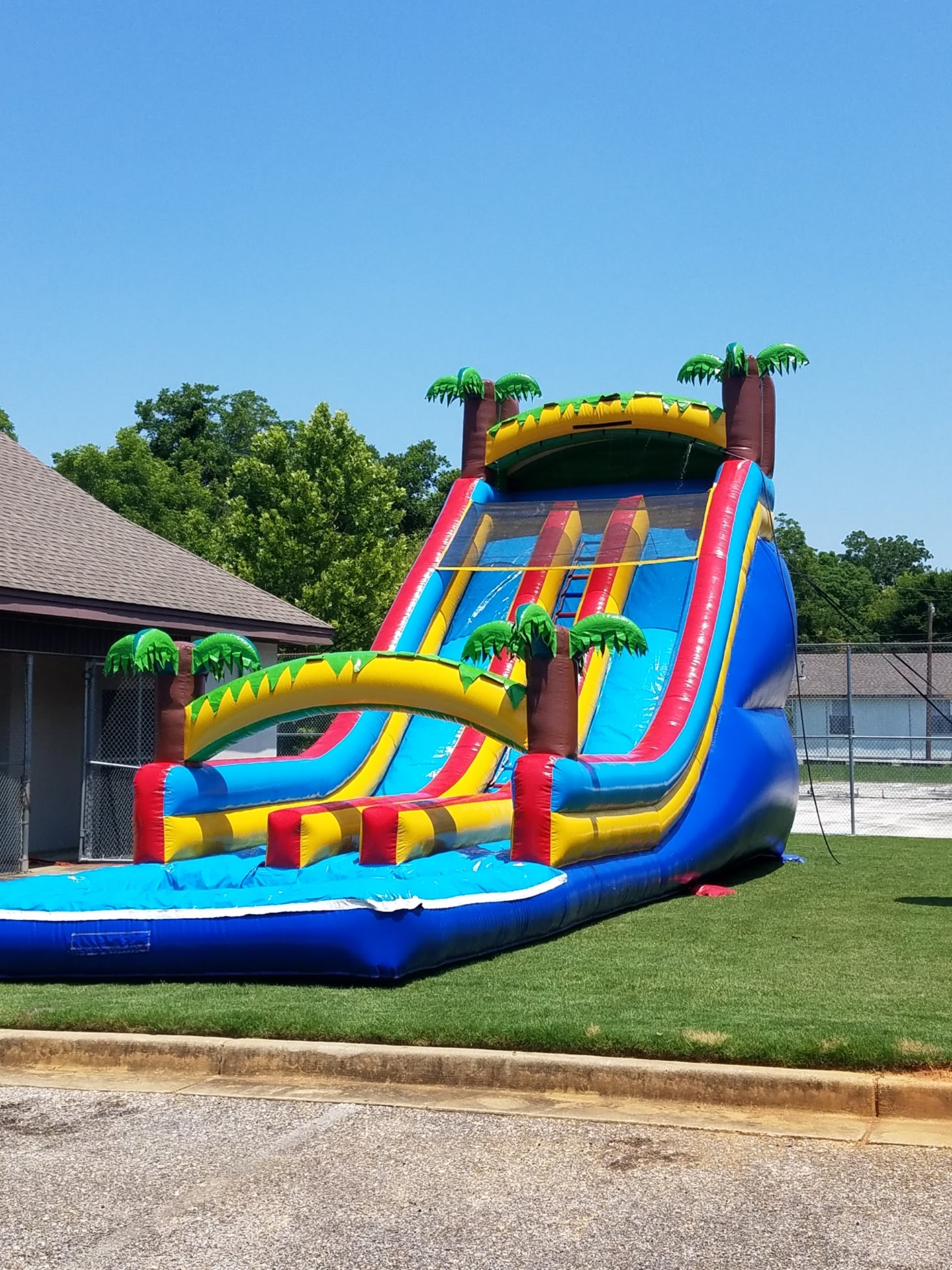 Big Tropical Slide. Palm Trees. Pool Attachment at End